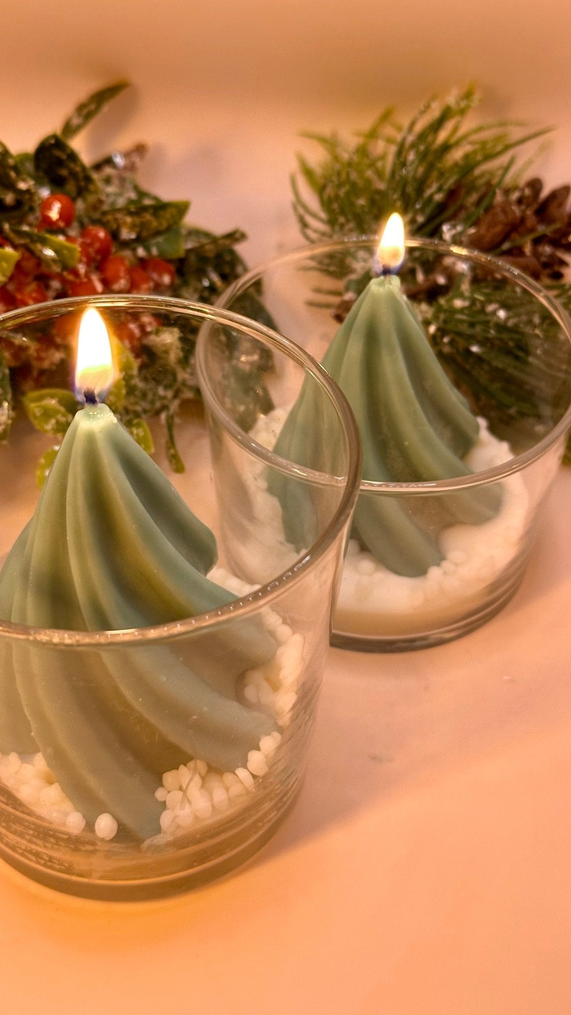 Celebra la Navidad con nuestro Árbol en Tarro, una vela artesanal que combina la comodidad de un tarro con la magia de un árbol navideño de cera de soja 100% natural. Su elegante forma y acabado la convierten en un detalle perfecto para llenar cualquier rincón de espíritu festivo.