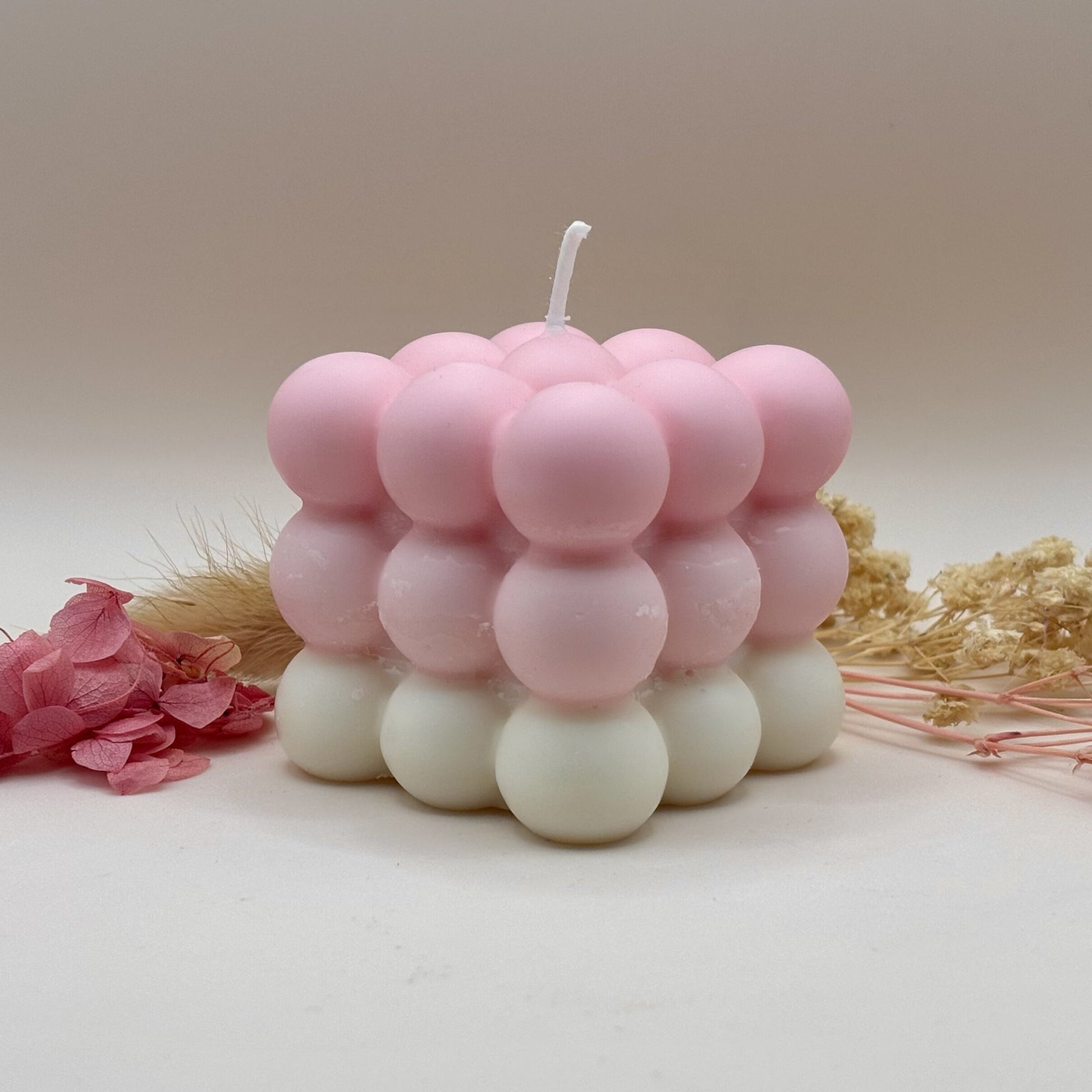 🕯️Ilumina tu hogar con Burbujas Rosa, un pack de dos velas hechas a mano con cera de soja 100% natural. Su suave color rosado y su delicado aroma a rosas te transportarán a un oasis de tranquilidad. Disfruta de la belleza natural y sostenible de estas velas artesanales.