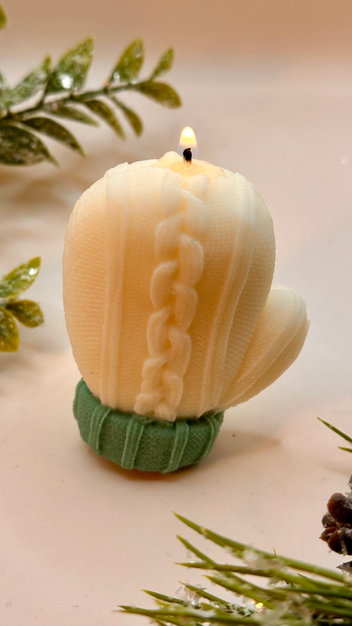 Llena tus espacios de calidez invernal con nuestro Pack de 2 Velas Manopla de Lana, dos velas de molde elaboradas a mano con cera de soja 100% natural y diseñadas con forma de manopla de punto, perfectas para aportar un toque acogedor y festivo a cualquier rincón.