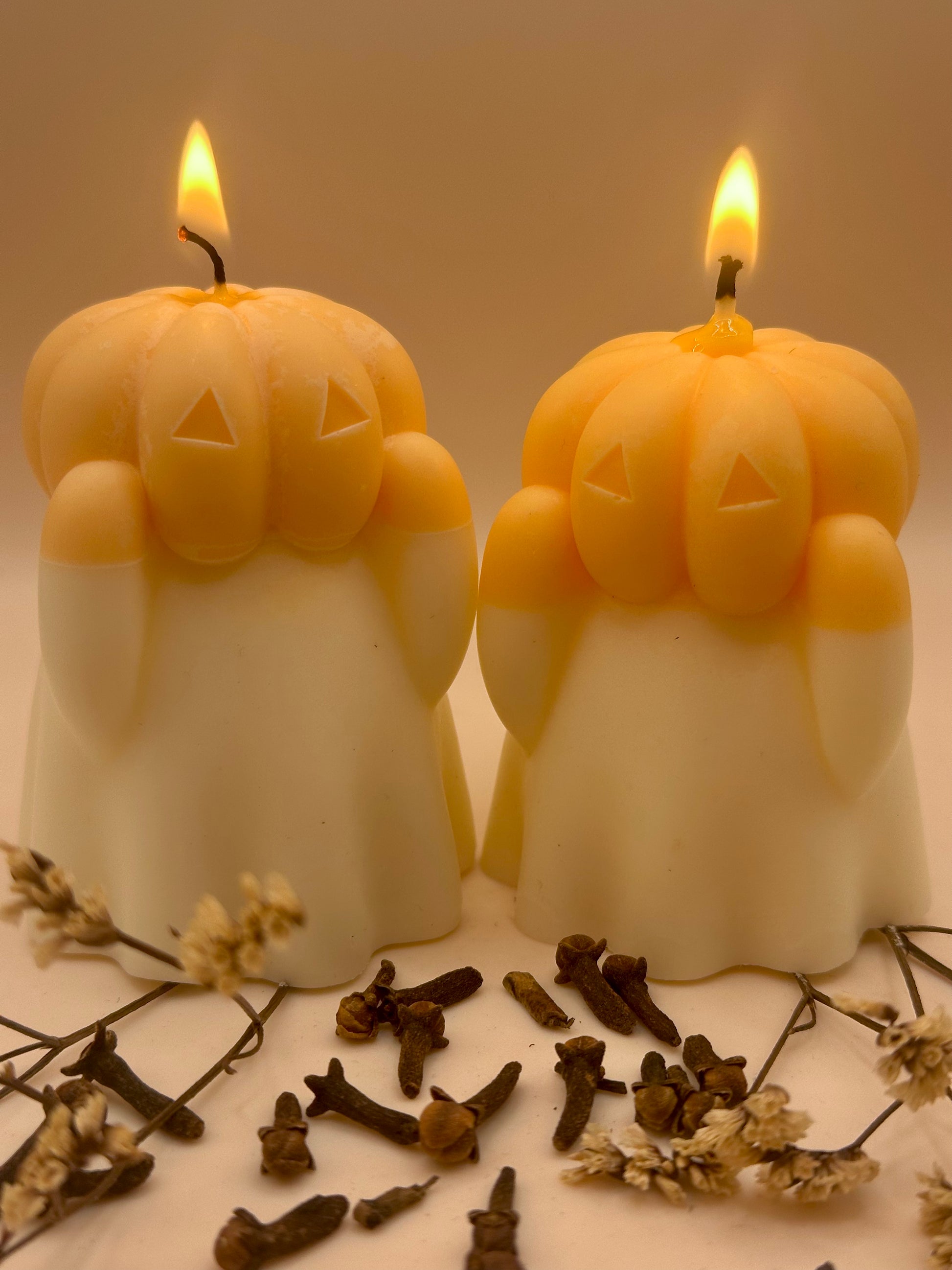 Ilumina tus noches con estas velas artesanales de cera de soja 100% natural, infusionada con el cálido y especiado aroma a tu elección. Su diseño único presenta dos pequeños espíritus con cabeza de calabaza, perfectos para dar un toque acogedor y mágico a tu hogar. Una pieza exclusiva de nuestra colección especial de otoño. 🍂✨